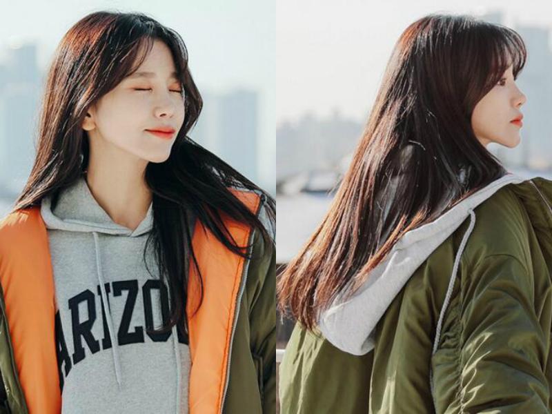 一头中长直发披散在肩上,特别的浪漫唯美,时尚的染色在阳光下闪耀着光芒,很有迷人的气质,特别像韩剧里的女主角,温柔却不柔弱,独立自信的脸容,这样的造型真是好看又时尚。