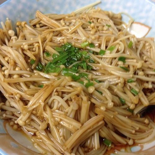 今天分享的是油泼金针菇。油泼金针菇是一道家常菜,用烧热的油泼在煮熟含有佐料的金针菇上,其制作方便,色泽鲜美,又具有很高的营养价值,深受大家喜爱。