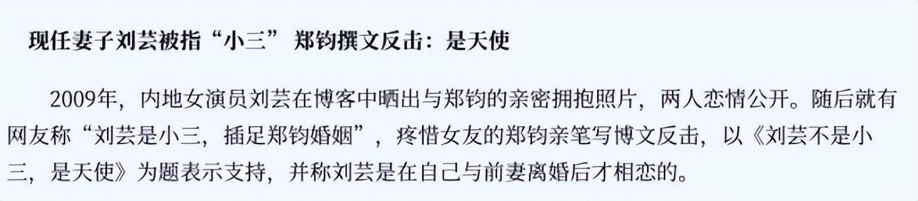 当外界怀疑刘芸是插足郑钧和前妻的第三者时,他立马发文反击,