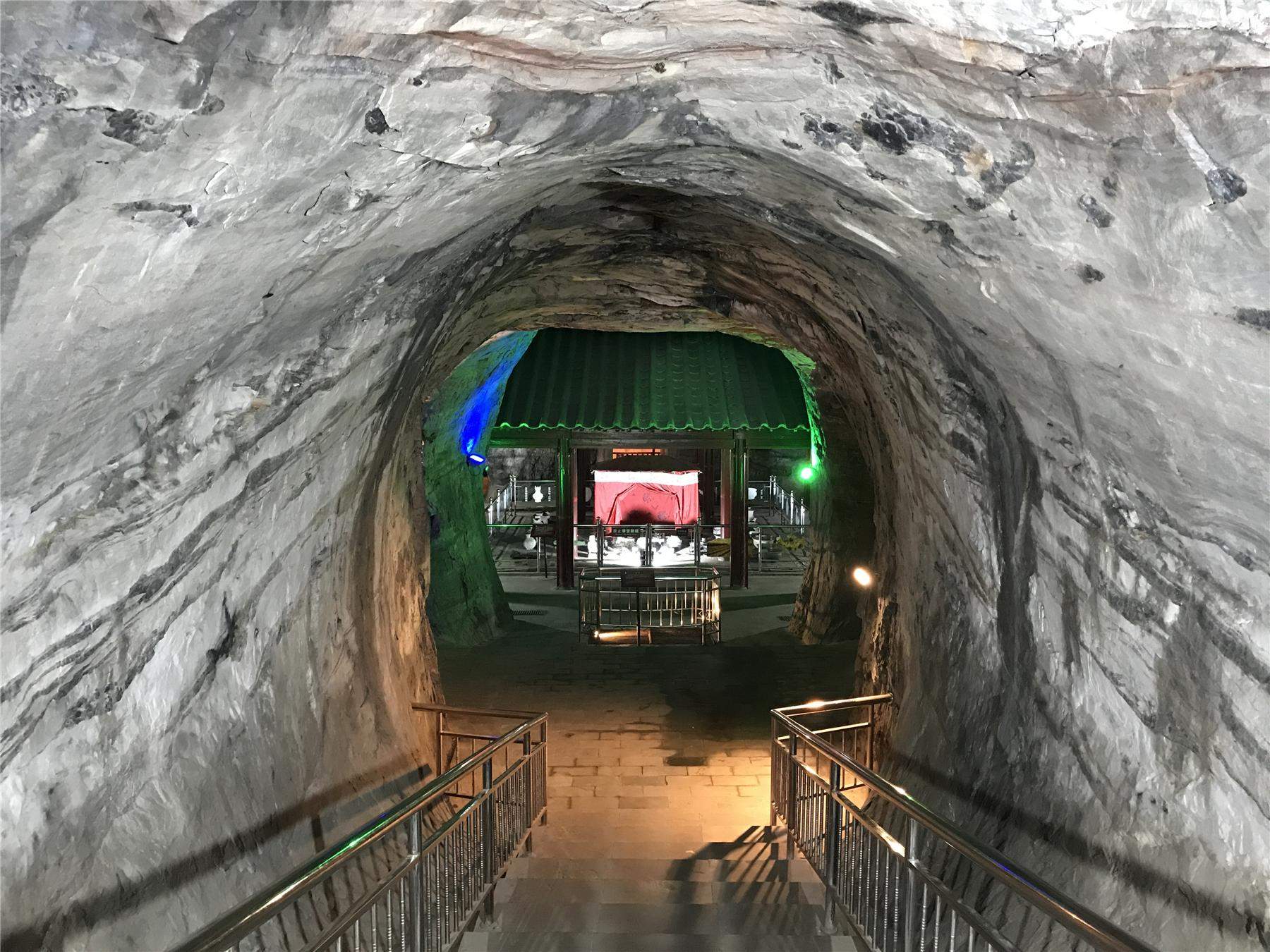 从山脚下走到墓口,有多高多远我不清楚,但总要有数千节台阶。我爬了许久,汗流浃背,才看见墓口。因为浑身是汗,我畏惧墓室的寒凉,在墓外徘徊了很久,不敢贸然进去,正好趁此时对这里的环境做一番考量。墓室东朝向,居高临下,每天能够接收到太行山的第一缕阳光。站在墓口向东望去,可以俯瞰华北平原,整个保定城尽收眼底。陵山周围还有几座石灰岩小山,但是已经被开采得面目全非,即使还留下一些残躯断肢,也是光秃秃的没有生气。而只有陵山,郁郁葱葱,这显然因为是旅游景点而刻意保护与装扮。