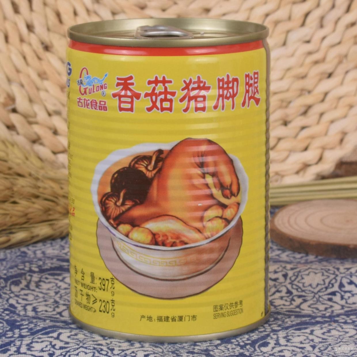 古龙香菇猪脚香菇的味道融入的非常好,猪脚是炸过再焖煮的,肉口感也很扎实,微微有点甜味,闽南口味,最精彩的是,每一盒猪脚罐头里都有一颗栗子,我愿意为了这颗栗子一直买下去。需要加热,但如果用来配面条可以直接打开放进面里。