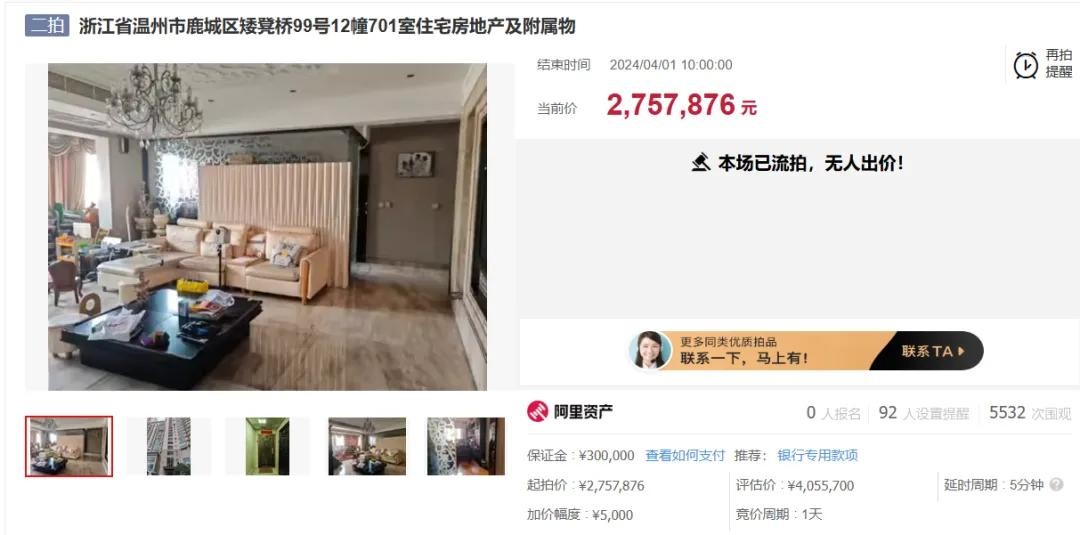 12幢701,一拍价格344.7万,因无人出价流拍。二拍上架又流拍。