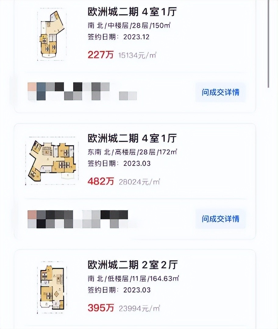 在房产交易平台,欧洲城二期去年3月的成交单价还在2.3-2.8万之间。