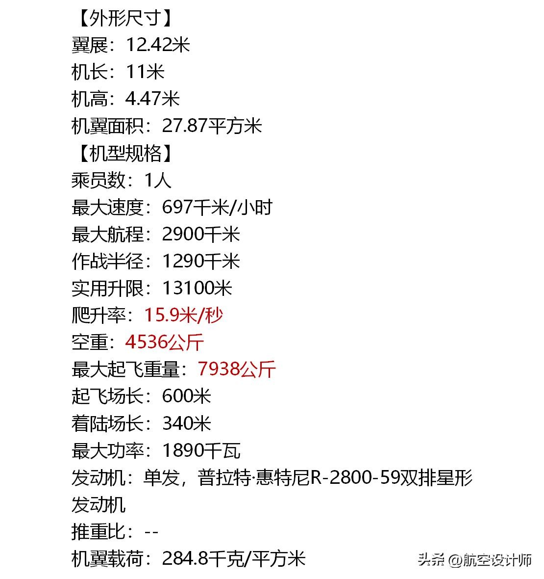 发动机:单发,普拉特·惠特尼R-2800-59双排星形发动机