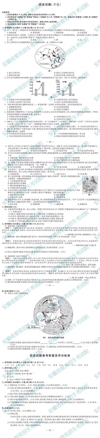 历史试题参考答案及评分标准