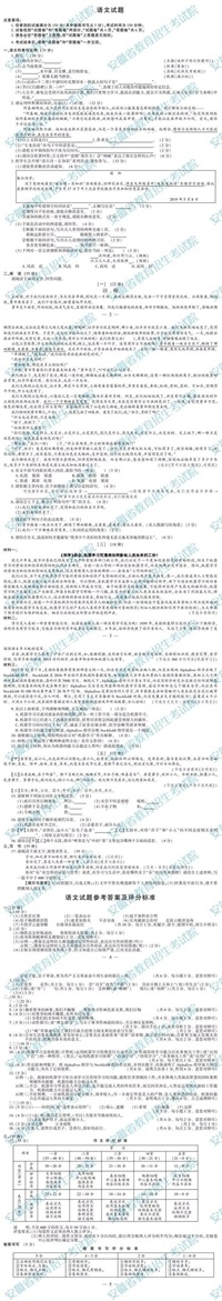 语文试题参考答案及评分标准