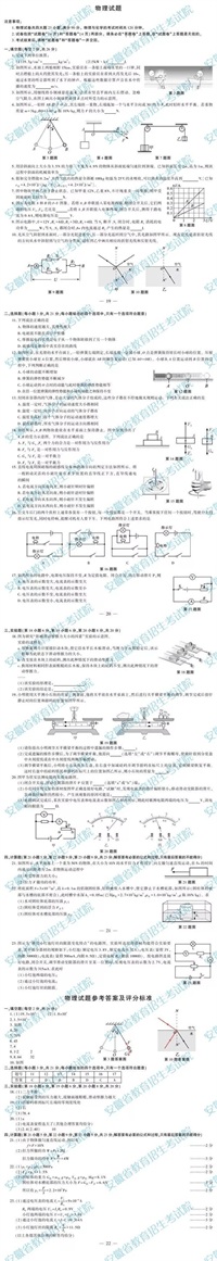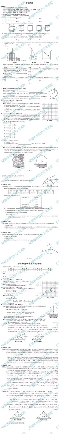 2019年安徽省中考试题参考答案及评分标准出炉!