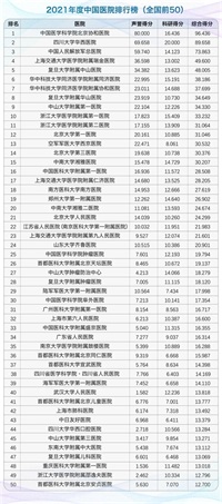中国医院排行榜出炉:上海top3是这三家医院!9专科全国第一