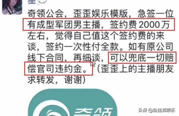 奇领打发时间出资2000万,急求YY成型男主播,并且兜底代赔违约金
