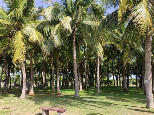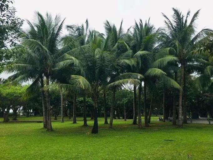 椰树椰林,椰姿百态。万绿园有成片的椰林,走在夏日的万绿园,椰树就像一把把遮阳伞遮住骄阳,给人们带来一丝清凉。