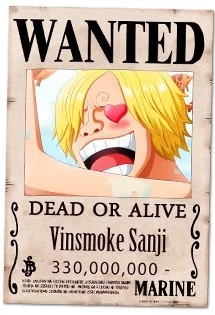 第二位,我们的山治同学赏金首次超过索隆三亿三千万贝里,这可够山治炫耀一阵子的!