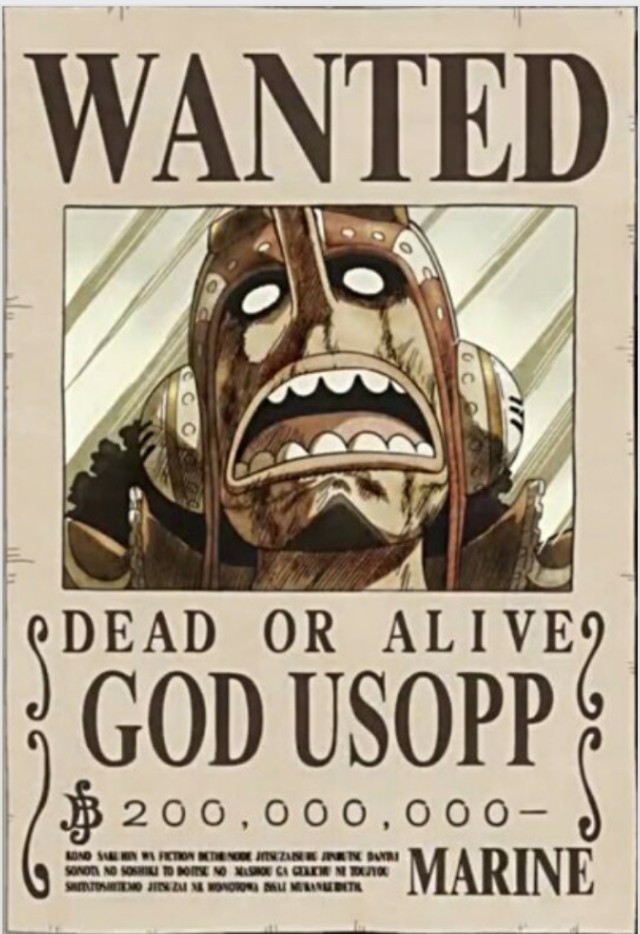 第四位,我们的乌索普大神,赏金两亿贝里!未来的狙击王实至名归哈哈……