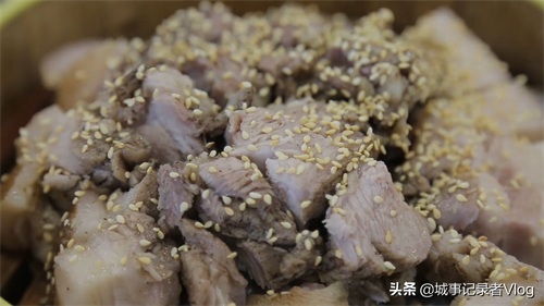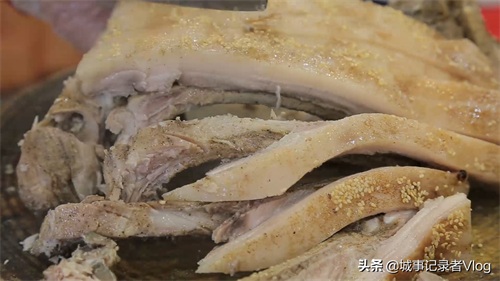 为了让猪肉爽口,肥而不腻,要用钢针在猪身上刺孔,蒸出肥油,再用冰水冲洗,再蒸15分钟左右,最后撒上一层炒过的香芝麻来添香赋味,就可以上桌享用了。这样做出来的蒸猪,肥而不腻、肉味浓郁。