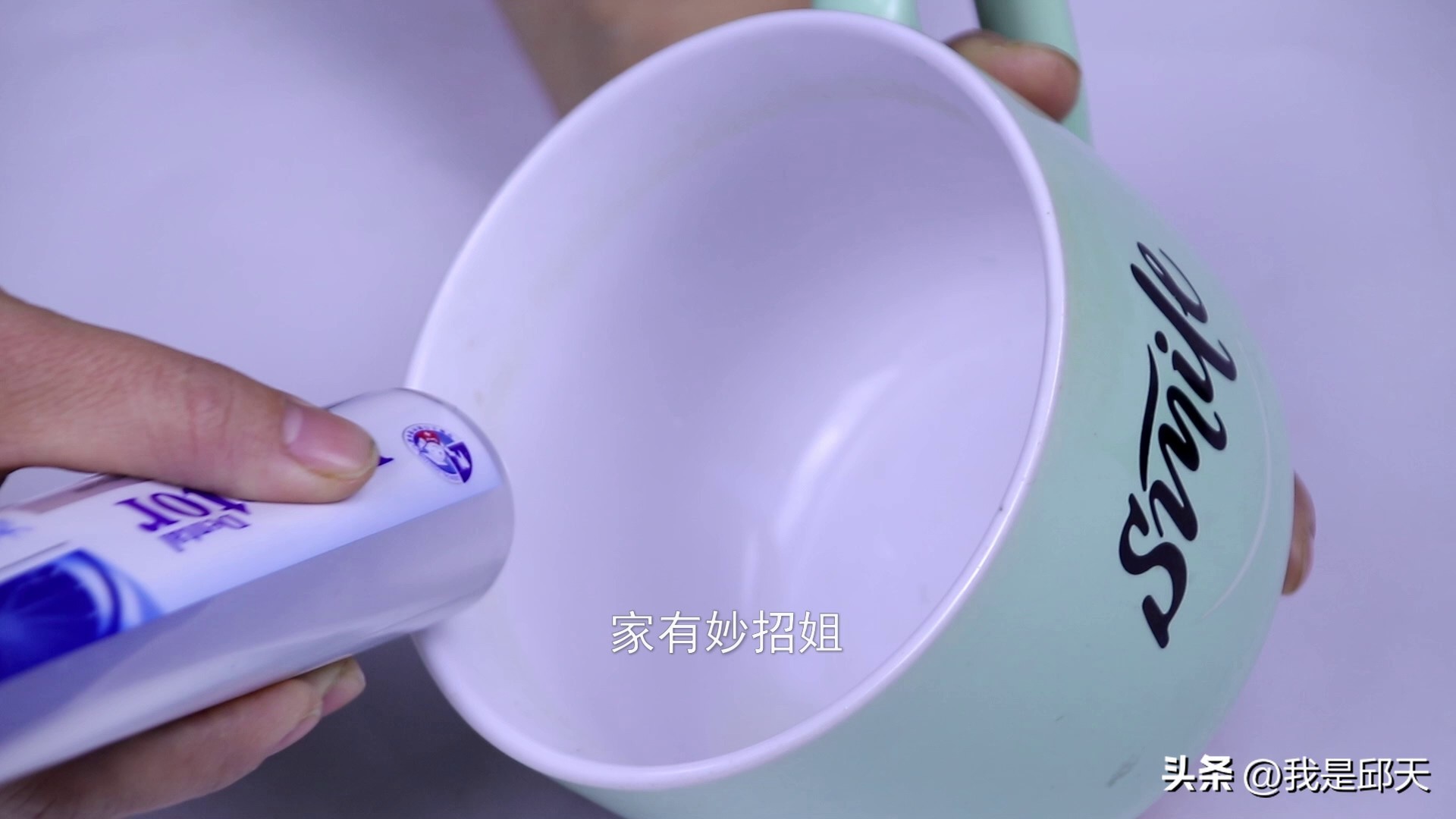 妙用四:洗杯子。我老公比较喜欢喝茶叶茶,每次他的杯子都是最难洗的,我们都知道,装过茶叶的杯子里面都会残留一层茶渍,用普通的方法根本不能将它洗干净,时间一长,白杯子都会变成黄杯子。后来我才知道,只要在杯子里挤点牙膏,然后拿个牙刷或者粗糙点的百洁布来擦拭,就能很轻松地将杯子清洁干净,效果非常明显。