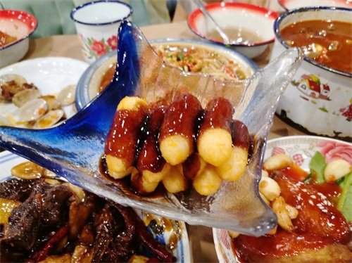 炸的金黄色的小年糕,在浇上一道红糖,就出锅了。一根根堆起来的小年糕,造型满分,后厨大师火候绝对完美。脆软相交,一点都不费劲。甜度适宜。作为饭后甜点超级舒适。(这里的饭是玉米饭哦~)
