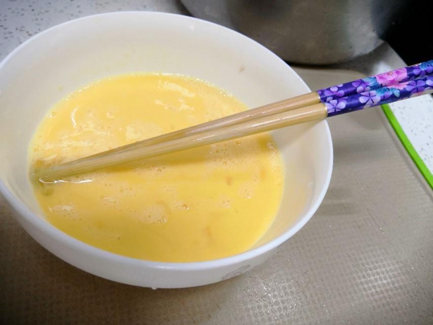 第二步:把鸡蛋打入碗中,搅拌均匀备用。