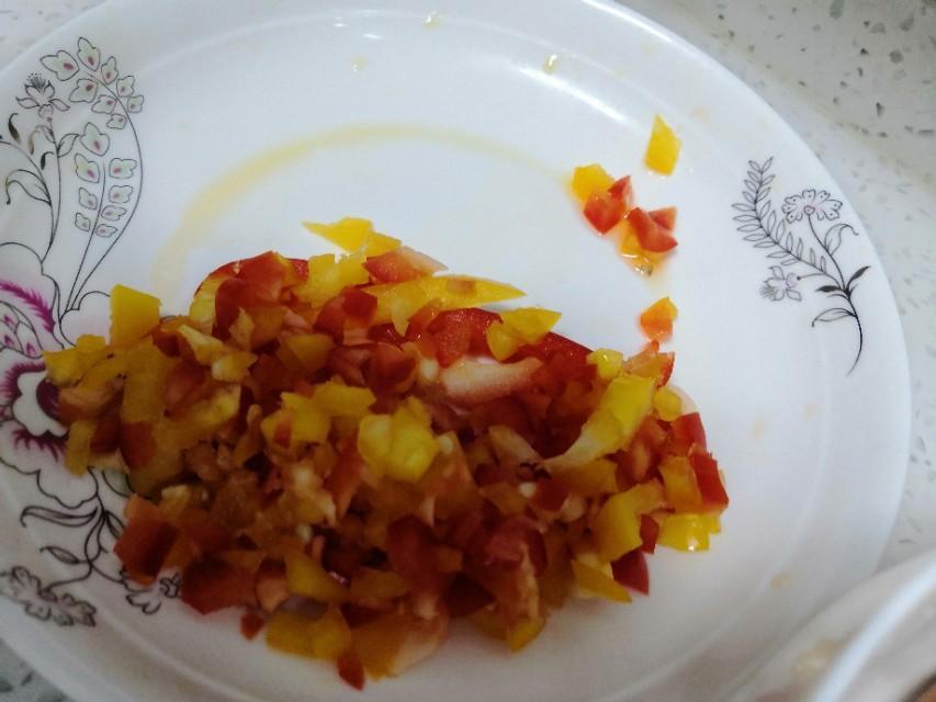 第三步:把彩椒切碎备用。