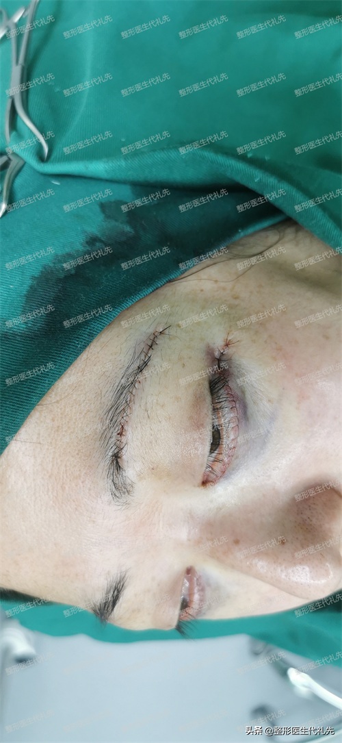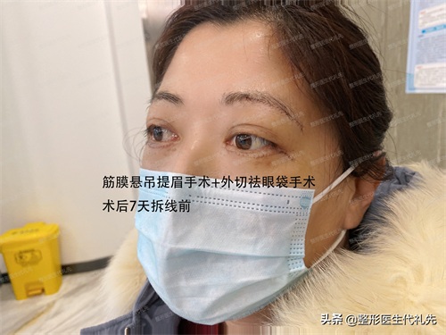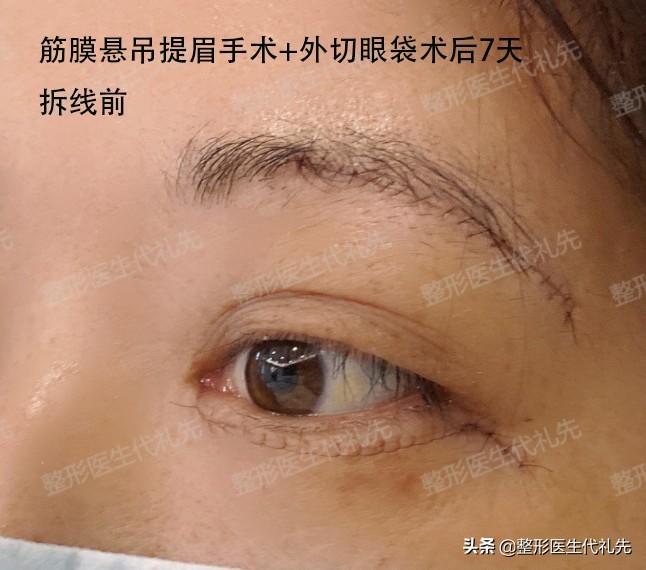 筋膜悬吊提眉手术+外切眼袋手术术后一周拆线前