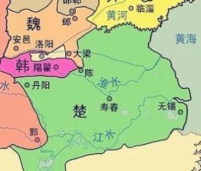 楚国:楚国的范围包括今天的湖北中东部、湖南北部、江西北部、安徽全境、浙江北部、上海市、江苏全境、河南东南小部分地区。楚国的都城在寿春(今安徽寿县),楚国主要的城市有彭城(今江苏省徐州市)、丹阳(位置有争议,一说今河南淅川境内)、无锡(今江苏省无锡)。