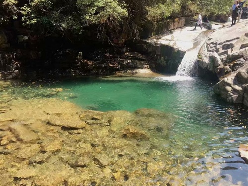 在峡谷里最不缺的是水,所以一路上都有很多水流,不同地方的水流不一样,有的是小小的涓涓细流,有的是气势十足的河流,有的是一汪翡翠般的清潭,像掉落人间的宝石,不管怎样的水,水质都是非常清澈的,让人忍不住想去水中玩耍。