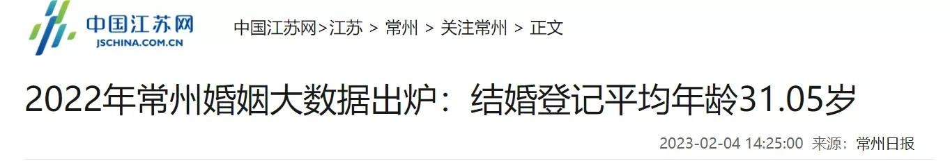 据统计,2021年全国结婚登记平均年龄为29.4岁,比2020年上升了0.28岁,平均每个省(区、市)登记的夫妻平均年龄为31.26周岁。