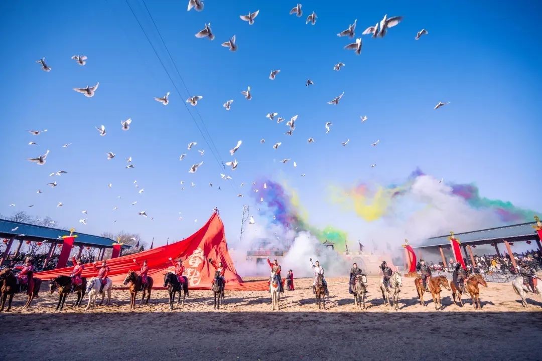 2月22日,在天上王城景区,千只白鸽腾空而起,飞天仙舞婀娜多姿,沙场激战扣人心弦——1000余名省外游客观赏了景区的“迎宾仪式”,开启了在沂水的春季之旅。游客们登上纪王崮顶,远眺沂蒙山区好风光,与“天池冰瀑”合影留念;观看《王者之战》《王朝盛宴》等演绎,体验祈福、市井杂耍、非遗演出等活动,沉浸式领略了历史文化的魅力。
