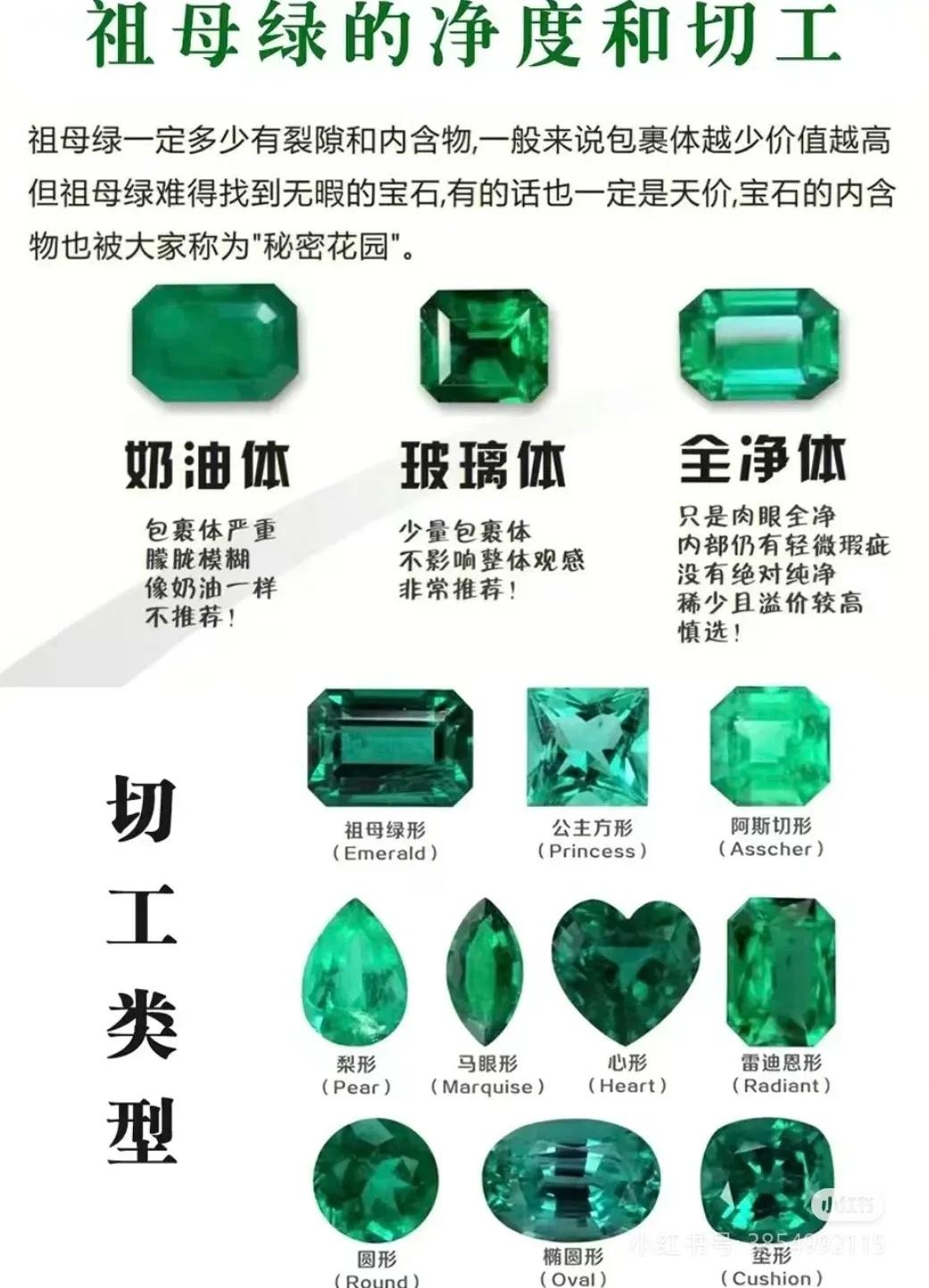 · 祖母绿的颜色十分诱人,绿中带点黄,又似乎带点蓝,无法用菠菜绿、葱心绿、嫩树芽绿等词汇准确表达。