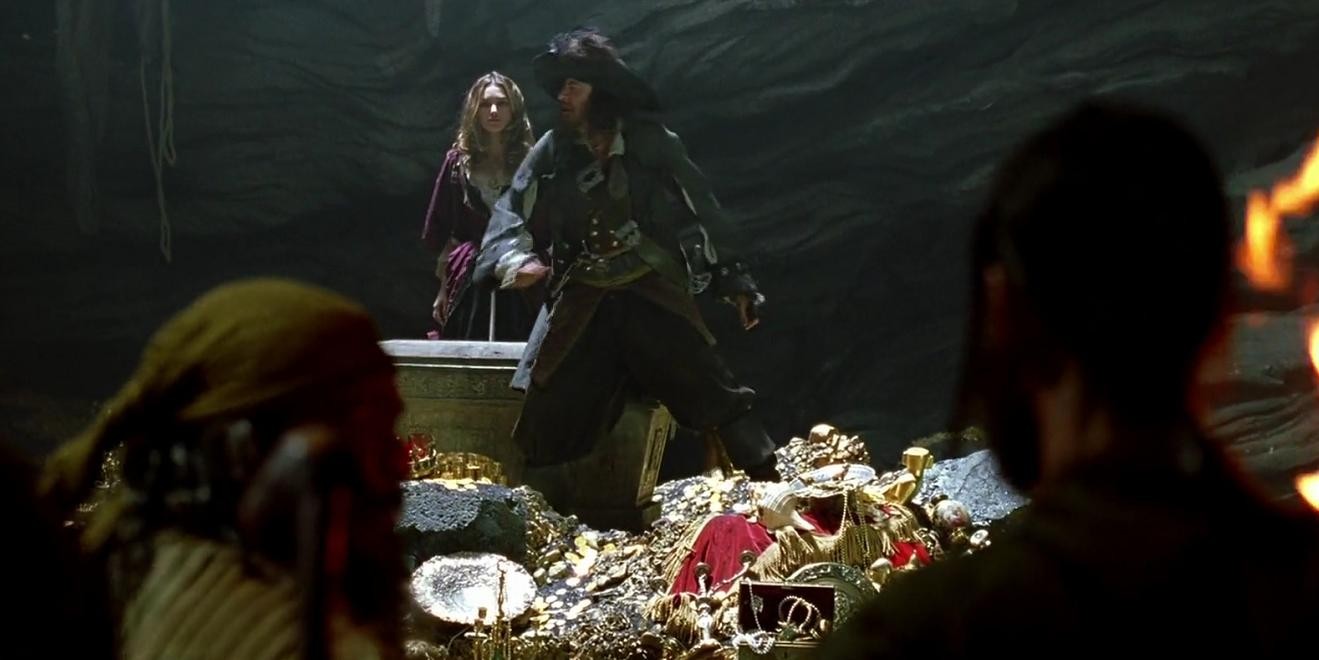 在电影第二部里,就有一幕他的船员因为始终没得到财宝而怨声连连,还好这时候杰克手里拿着装戴维·琼斯心脏宝箱钥匙的图纸,谎称这是宝藏钥匙,要不然他就会经历第二次船员叛变了。