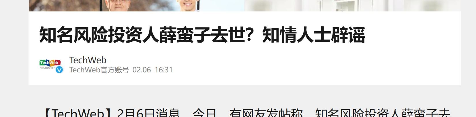 TechWeb-2025-02-06-《知名风险投资人薛蛮子去世?知情人士辟谣》