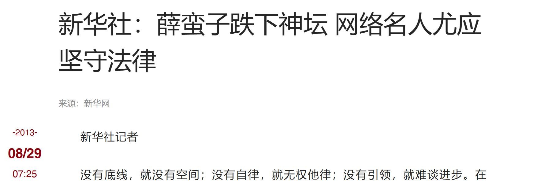 环球网-2013-08-29-《新华社:薛蛮子跌下神坛 网络名人尤应坚守法律》