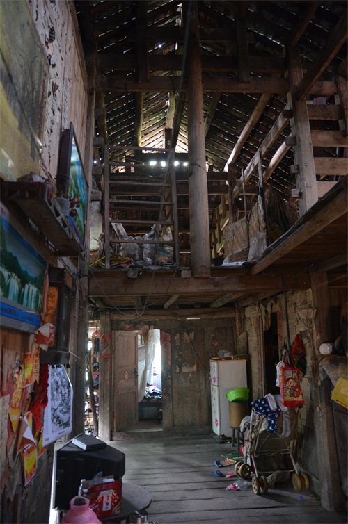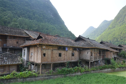 第二天一早就出发了,车不是想象中的旅游中巴,而是一辆贴着乡村公交的中巴公交车,比较破。车离开了荔波县城,一路开进了大山,满眼都是绿色的山,虽然不高,但都很陡。我们到的第一个景点是一个布依族古村落,全是古老的木质住宅,原以为这里已经不住人了,其实就是一个原汁原味的村子,没有一点点商业气息,完完全全的充满生活气息的古村落,甚至可以走进人家的家里去参观,当地人特别友好。