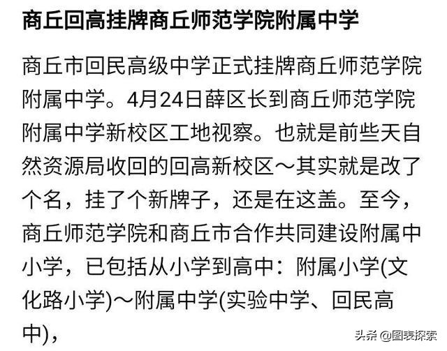 2022年3月16日,商丘市教体局宣布了一个重要消息,370所民办学校集体进行了更名,重点清理了诸如“实验、外国语、国际”等不规范名字的民办学校。而在2021年商丘市也在极力的调整公参民学校,转设公办学校,动静颇大。这也意味着在近一年内的时间,商丘市的学校迎来了很多的重大调整,而随着商丘师范学院附属中学的建设,商丘市高等教育的当家花旦,已经配备了3所附属学校!