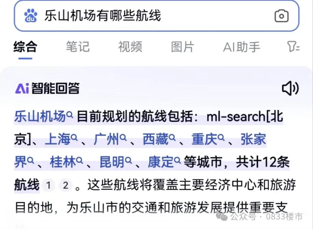 那么乐山机场通航后,能飞往哪些城市呢?截止目前为止,还未看到官方公布,但是从搜索引擎中,有AI回答:乐山机场一旦通航,主要飞往的地区是北京、上海、广州,除了这三个地方,建成后还规划开通至西藏、重庆、张家界、桂林、昆明、康定等城市,共12条航线。