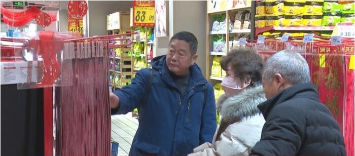 城乡街道张灯结彩,商超大集也是热热闹闹。在市区一家超市,年货专区被布置得红红火火,春联、福字、大红灯笼等装饰增添喜庆氛围,各种水果、零食礼盒包装精美,从传统礼品到各种单品,应有尽有。为满足春节期间的购物需求,超市方面提前半个月就备足货源,确保货品充足、品质上乘。