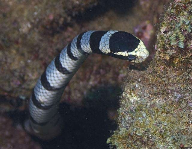海蛇的前半部细小,呈圆柱形,后半部变粗,尾巴不像陆蛇那样细长如鞭,而是侧扁如桨,在海中游泳时,像船橹那样左右拨水前进。