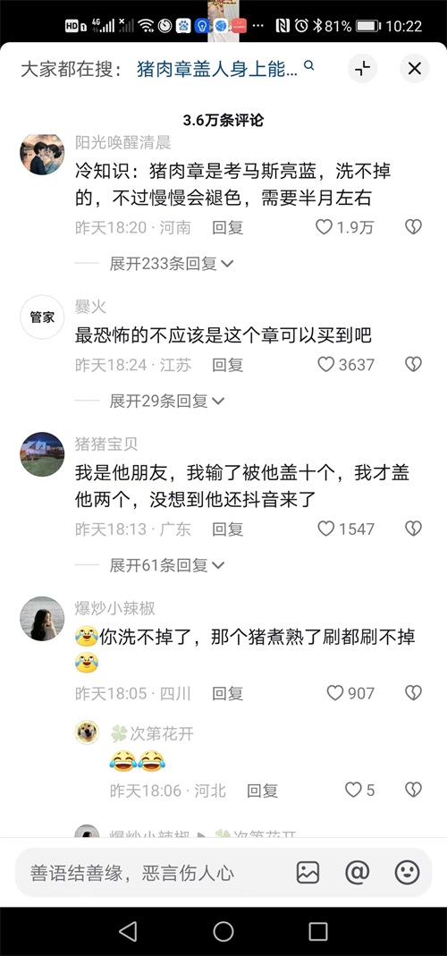 据了解,这名男子和他的朋友正在玩一款竞技游戏,不小心发生了一场意外。朋友们在玩笑间将猪肉检疫章盖在了他的身上,本以为只是一个玩笑举动,却没想到会引发如此长时间的困扰。