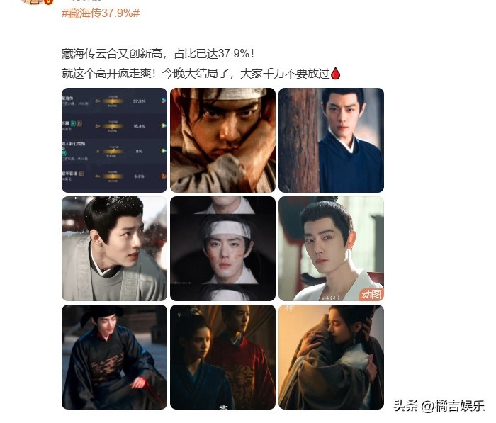 《藏海传》自播出以来,就展现出了非凡的热度和影响力。云合数据作为衡量剧集热度和市场表现的重要指标,向来备受业内人士和观众的关注。《藏海传》在云合数据方面再创新高,占比达到了惊人的37.9%。这一数据可不是简单的数字,它背后蕴含着诸多深层次的意义。从市场层面来看,如此高的占比意味着《藏海传》在众多同期播出的剧集中,吸引了大量观众的注意力,成为了观众们茶余饭后讨论的焦点。与其他剧集相比,它就像是一座高耸入云的山峰,在众多小丘陵中显得格外突出。