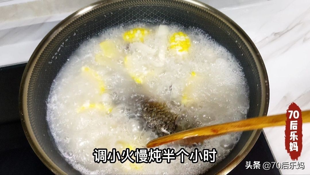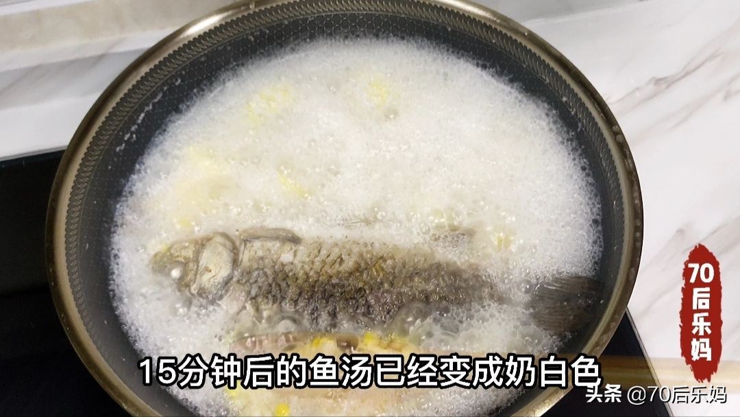 这时的水不够可以加入足够的开水,中途不再加水,大火煮十五分钟后汤汁已经变为白色,盖上盖子调小火继续煮半个小时。