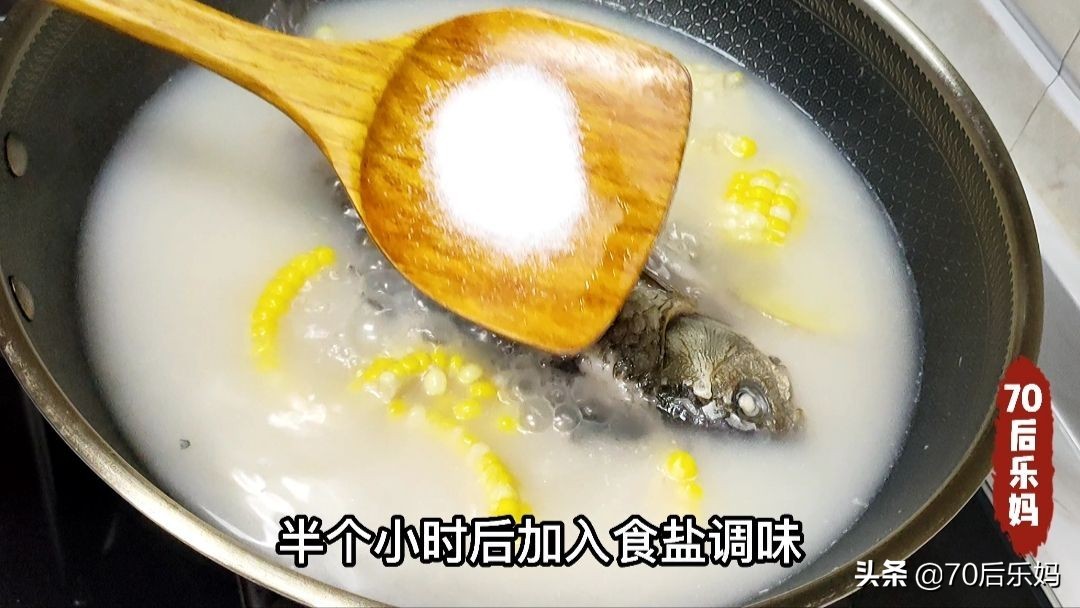 半个小时后加盐调味,再煮五分钟关火。盛出即可饮用。