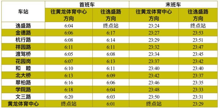 3号线首末班车时间