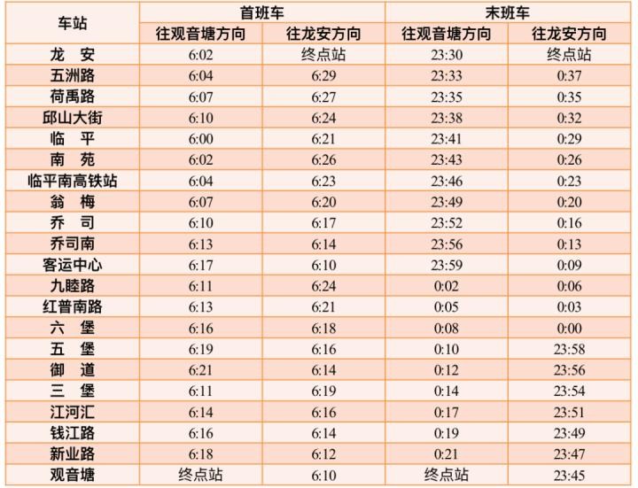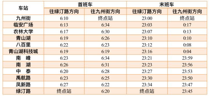 10号线首末班车时间